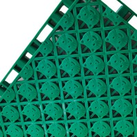采用全新改性聚丙烯分子材料,具有环保、安全、舒适等新特性;地板表面磨砂防滑设计,拥有合适的运动摩擦阻力,运动员在进行起动、蹬跳、滑步或指动石都可以达到多项防滑的作用,并且还具有极佳的减震效果,从而避免运动员在运动时受到伤害。